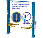 Гарантия 36 мес – наш монтаж, 24 мес – самостоятельная установка. Срок эксплуатации – не ограничен. Съем со стопоров ручкой на одной колонне (экономия времени). Модернизированные каретки. Увеличенная толщина гребенки стопора, позволяет без проскальзываний ставить подъемник на стопора, не опасаясь падений авто. Поднимает ВСЁ – от «Оки» до «LC200» (h=120÷1900 мм). Между колоннами 2850 мм. Длина (min-max) лапа короткая 750-1080 мм; Длина (min-max) лапа прямая длинная 900-1400 мм. г/п 4 тонны.