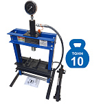 Усилие 10 тонн. Настольный. Ручной. Для запрессовки подшипников, деталей машин, втулок и т.п. в автосервисе, мастерских по ремонту лодочных моторов, велосипедов и т.п. Гидроцилиндр с пуансоном имеет возможность перемещения по всей ширине рамы. Контроль усилия – визуально по шкале манометра. Интервал пуансона 135 мм. Рабочее окно: 400 x 350 мм.