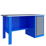 Верстак однотумбовый поставляется в разобранном виде. Нагрузка на столешницу до 600 кг. Стандартный цвет: корпус - серый глянец RAL 7030, ящики и двери тумб - синий RAL 5017. Размеры:855x1600x700 мм. Вес: 86 кг.
