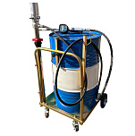 Для бочек 20-60 кг. Установка оснащена тележкой, пневматический насос для масла 3:1 производительность 18л/мин, шланг 4 м, раздаточный пистолет с электронным счетчиком. Колёса 2 прямых + 2 поворотных. Масса: 25,5 кг.