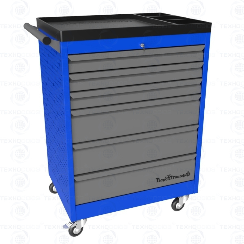 Тележки инструментальные серии PROFFI 950 предназначены для использования на предприятиях любого профиля занятых ремонтом и изготовлением различной продукции. На боковые стенки инструментальной тележки нанесена перфорация размером 25х25 мм и диаметром отверстия 8 мм, что позволяет устанавливать на них навесной инструмент или крючки. Наибольшей популярностью тележки инструментальные пользуются в сфере авторемонта и обслуживания автомобилей .Тележки имеют выдвижные ящики на шариковых телескопических направляющих полного выдвижения с фиксацией в закрытом положении, предотвращающее открывание при передвижении тележки. Ящики имеют центральный замок, который позволяет ограничить доступ посторонних лиц к содержимому ящиков. Тележка инструментальная изготовлена из высококачественного металла ведущих Российских производителей, покрашена порошковой краской производства Германии, имеет итальянскую и турецкую фурнитуру. Тележки для инструмента оснащены двумя не поворотными колесами диаметром 100 мм, одним поворотным и одним поворотным со стопором, которое фиксирует тележку и предотвращает непроизвольное скатывание.