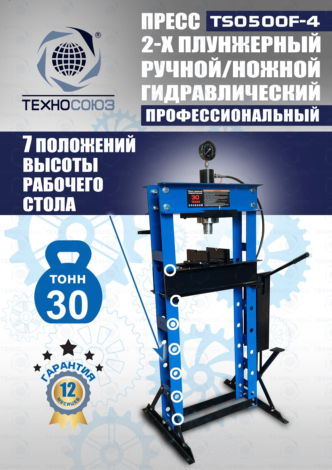 TS0500F-4 Пресс гидравлический ручной/ножной, 30 тонн