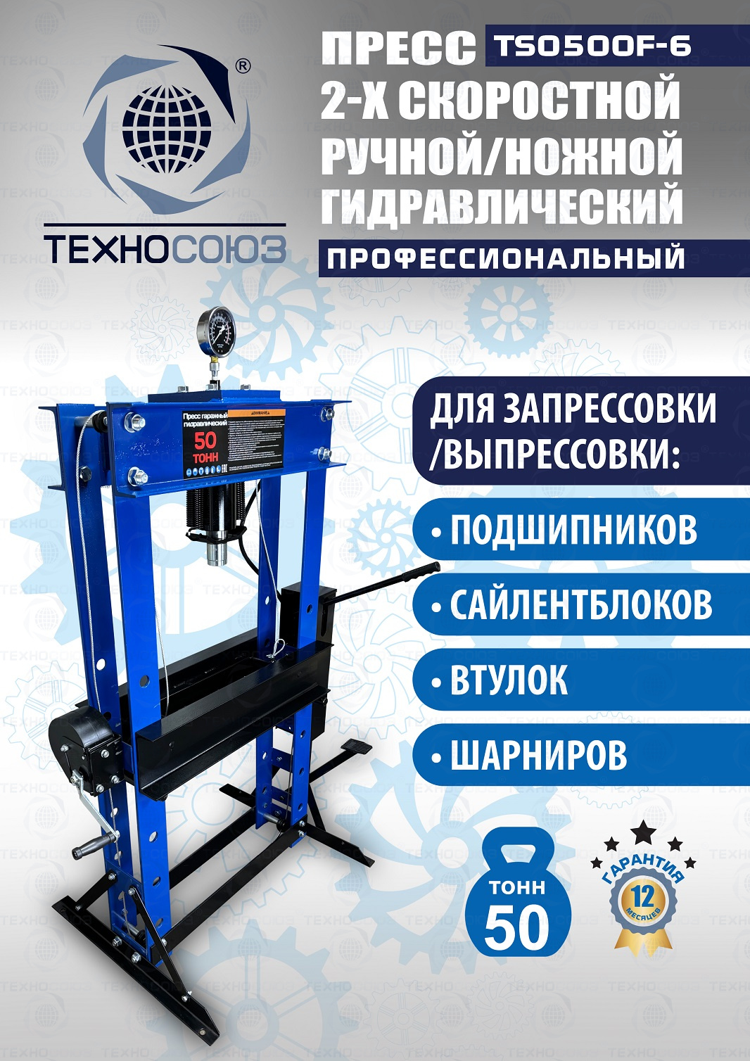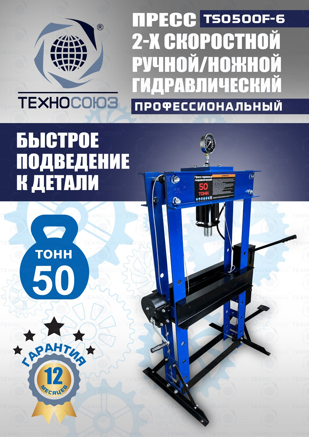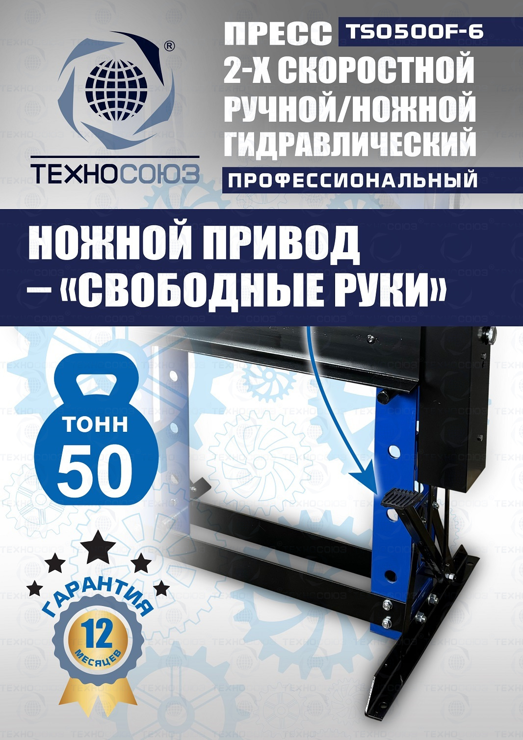 TS0500F-6 Пресс гидравлический ручной/ножной, 50 тонн