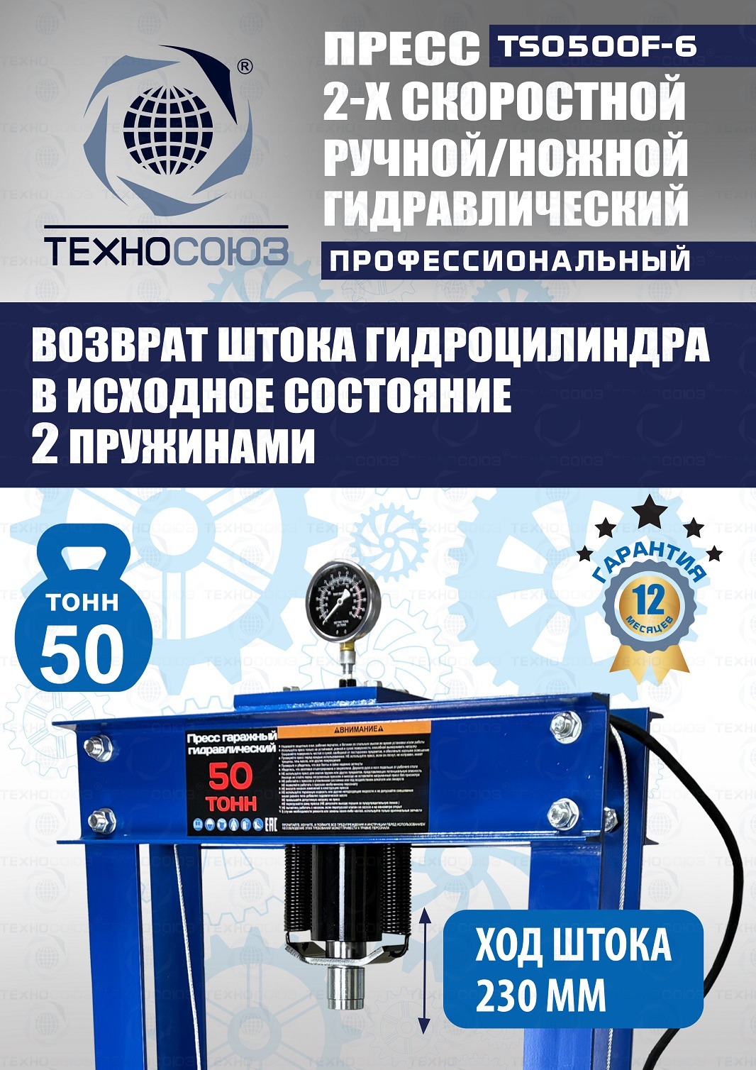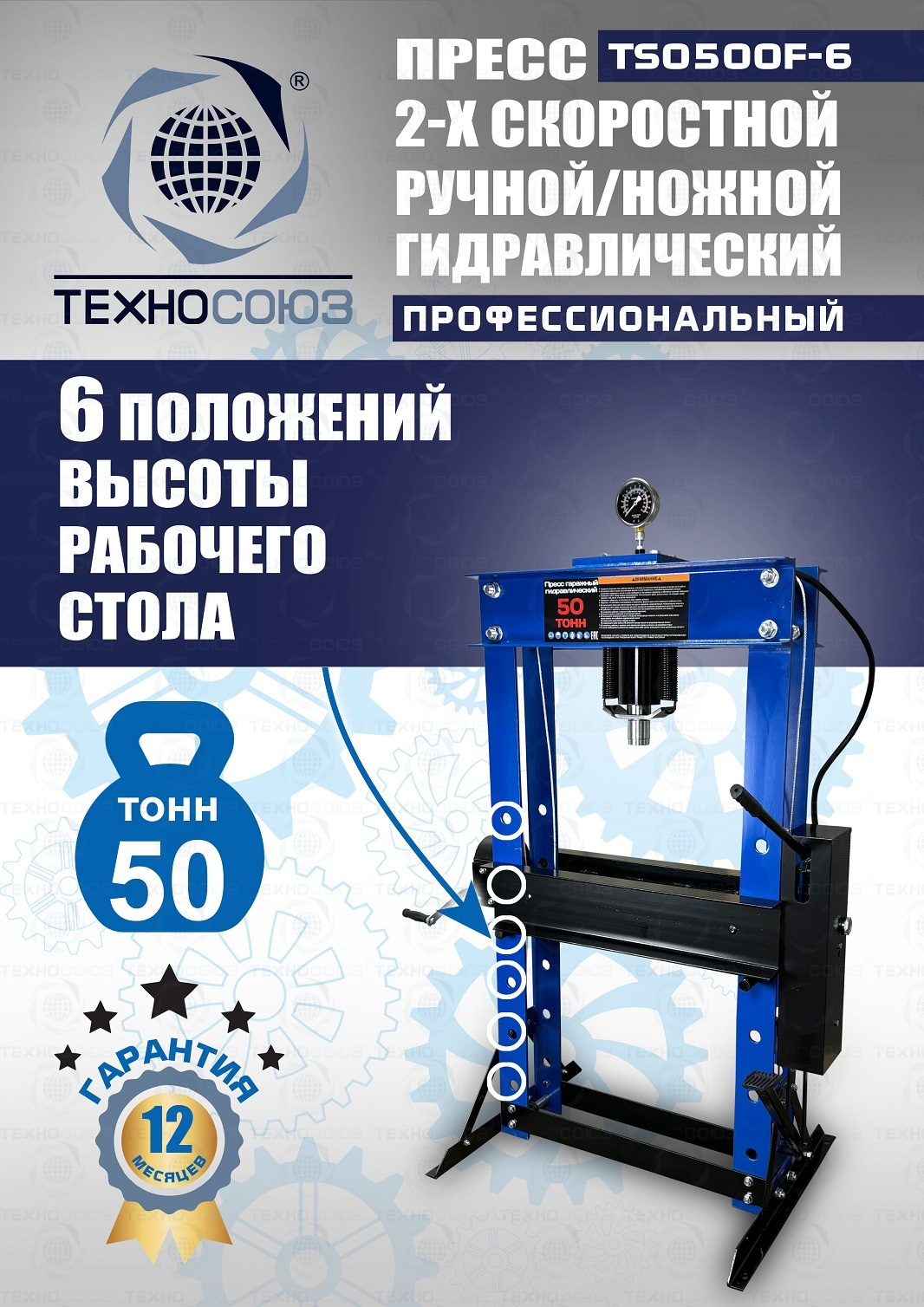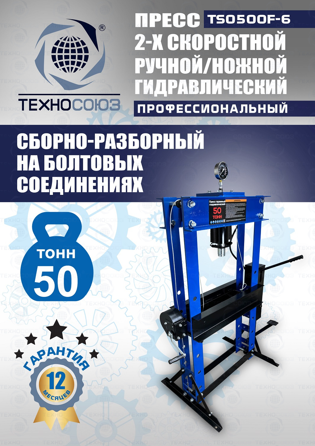 TS0500F-6 Пресс гидравлический ручной/ножной, 50 тонн